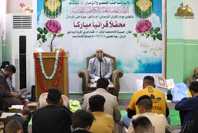 تيمّناً بذكرى ولادة مهدي الأمم إمامنا الحجة بن الحسن العسكري "عليه السلام"، تلك الولادة التي ملأت سماء الإسلام بالفرح والغبطة والسرور، وإحياءً للذكرى السنوية التاسعة لانطلاق فتوى الدفاع الكفائي المباركة، وبرعاية موفقة من قبل الأمين العام للعتبة الكاظمية المقدسة، خادم الإمامين الكاظمين الجوادين الدكتور حيدر حسن الشمّري، نظّمت الأمانة العامة للعتبة الكاظمية المقدسة/ مركز القرآن الكريم وبالتعاون مع دار القرآن الكريم في قُرى جرداغلي، بيراوجلي، قره ناز في قضاء آمرلي محفلاً قرآنياً بحضور عدد من الأساتذة والطلبة والمهتمين بالشأن القرآني.