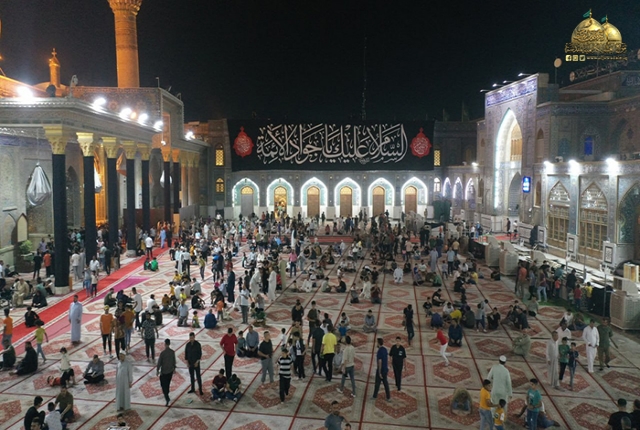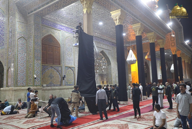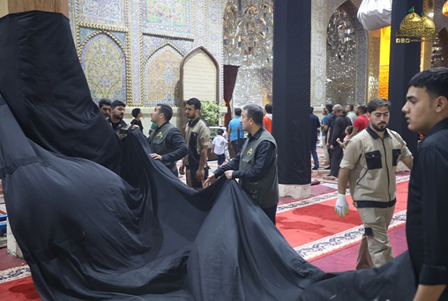 صحن الإمامين الكاظمين يتشح بالسواد إعلاناً للحِداد وإحياء شهادة إمامنا الجواد "عليه السلام"