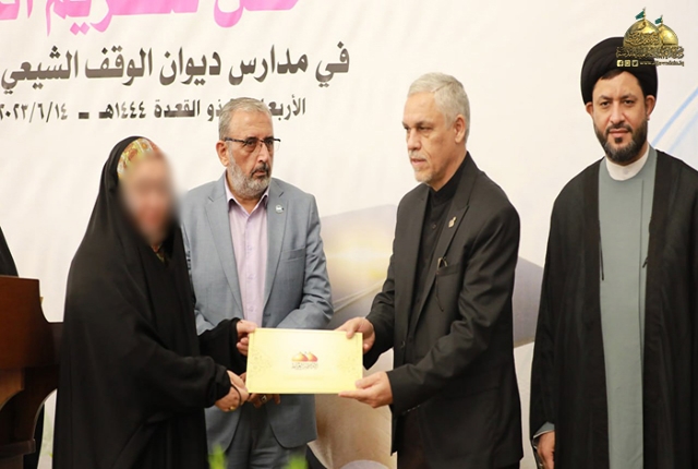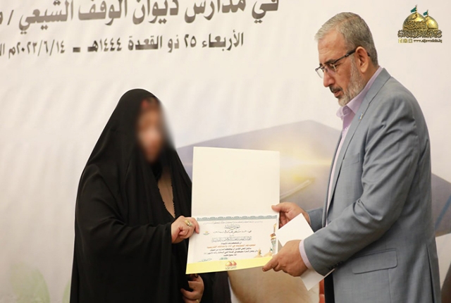 تكريماً لتفوقهن واجتهادهن الكبيرين وتميّزهن في التحصيل الدراسي والمعرفي، وتواصلاً مع تلك الطاقات الفتية الشابة والتطلّع نحو تشجيعهن لخدمةِ بلدهم وشعبهم، أقامت الأمانة العامة للعتبة الكاظمية المقدسة وبرعاية كريمة من أمينها العام خادم الإمامين الكاظمين الجوادين الدكتور حيدر حسن الشمّري، وبالتعاون مع هيأ#الح #ش#د/ قسم تمكين المرأة حفل تكريم الطالبات المَعفُوَات في مدارس ديوان الوقف الشيعي بمحافظة بغداد، بحضور نائب الأمين العام للعتبة الكاظمية المقدسة المهندس سعد محمد حسن، ومدير عام دائرة التعليم الديني والدراسات الإسلامية في ديوان الوقف الشيعي سماحة السيد عمار الموسوي، وكوكبة من الملاكات التعليمية والتربوية وممثلات من قسم تمكين المرأة.