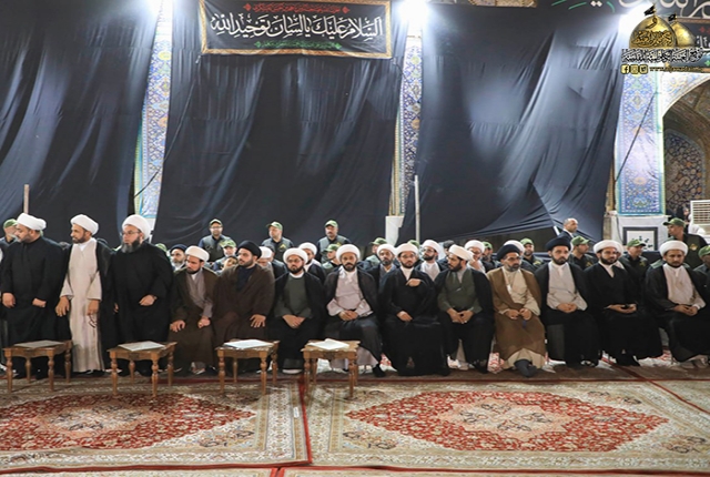 وكانت هناك كلمة للمشروع التبليغي في الحوزة العلمية الشريفة وألقاها مُمثل المرجعية الدينية العليا في مدينة الكاظمية المقدسة سماحة الشيخ حُسين آل ياسين "دامت توفيقاته" فجاء فيها: (لمثل هذا المشهد فليعمل العاملون، ولمثل هذا هَوَتْ أفئدة المؤمنين لسيد المرسلين وآله الطاهرين، لمثل هذا تُقام هذه الزيارات الشريفة والمجالس المنيفة، وتذرف الدموع ويندب النادبون، ويصرخ الصارخون، ويضج الضاجون، ويعج العاجون، لذا فنحن نكرر الدعاء والثناء والشكر للزائرين ولأصحاب العزاء ولمن يخدمهم ويعتني بأمورهم من القائمين على خدمة المشاهد المشرفة العلوية والحسينية والكاظمية والعسكرية والعباسية ومن الجهات الرسمية وغير الرسمية، وفق الله الجميع لمزيد من التشرف بخدمة الزوار ورعايتهم، ويكرر طلبة العلوم الدينية والمبلغون والمبلغات ما قاله المرجع الديني الأعلى سماحة آية الله العظمى السيد علي الحسيني السيستاني "دام ظله الوارف": (أنا خادم لكم ومن يقبلني فهو متفضل عليّ) ليتفضل علينا المؤمنين والمؤمنات بالسؤال والاستفسار ونسأل الله تعالى أن نكون على قدر مسؤولية الإرشاد والتبليغ).