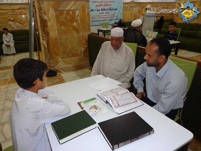 بدعم من الأمانة العامة للعتبة الكاظمية المقدسة ومتابعة مستمرة على تيسير العمل القرآني للشباب والصغار وخصوصا طلبة المرحلة الابتدائية, حيث تتوالى الجهود الحثيثة من اجل إنجاح الإعمال والنشاطات القرآنية سيما في شهر ربيع القرآن شهر رمضان الكريم حيث أقيمت مسابقة لحفظ جزء عمّ والخاصة بدورة الجوادين القرآنية والتي يرتادها طلبتنا الأعزاء من البنين والبنات للأعمار من (8- 15 ) لترسيخ الثقافة القرآنية ليتنافسوا على حفظ آيات الله البينات وكان حكما على جودة الحفظ الحافظ لكل القرآن الحاج مكي السعدي وعلى التفسير والمعاني الشيخ عماد الكاظمي والشيخ نجم الدراجي والشيخ قاسم الخفاجي وعلى الإتقان السيد عبد الكريم قاسم والأستاذ حيدر سعد الكاظمي والحاج محمد حسين الشامي حيث كانت الأجواء التنافسية مليئة بالتفاعل مما يعطي الأمل بنشوء جيل واع ٍ يعمل مع القرآن حفظا وقراءة وتطبيقا .