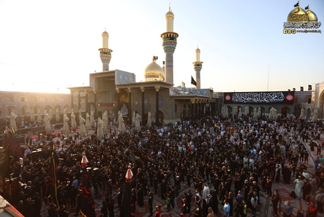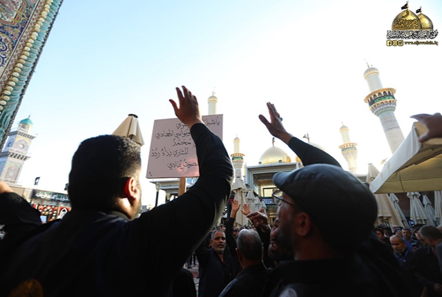 بعدها تجمهرت الحشود المعزية من الخدم واقامت مجلساً تأبينياً في رحاب الصحن الكاظمي الشريف حيث خيمت أجواء الحزن والأسى بهذا المصاب الجلل والرزء العظيم.