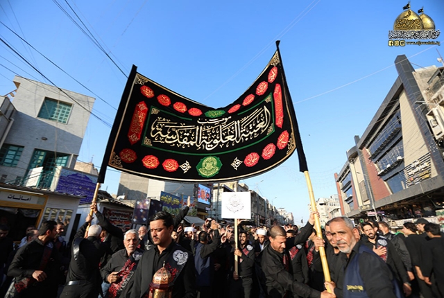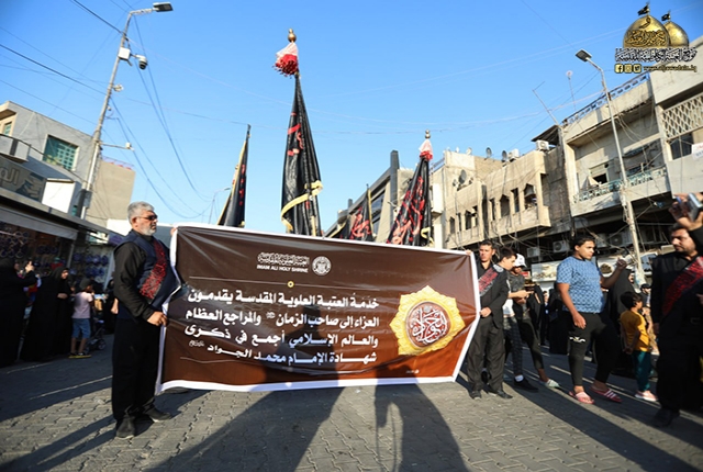 نظّم موكب خدّام أمير المؤمنين في العتبة العلوية المقدسة مسيرة عزائية إحياءً لذكرى استشهاد غصن الشجرة السرمدية الإمام محمد بن علي الجواد "عليه السلام" وكان في استقبال المعزّين ومشاركتهم بهذه المناسبة الأليمة خدّام العتبة الكاظمية المقدسة.