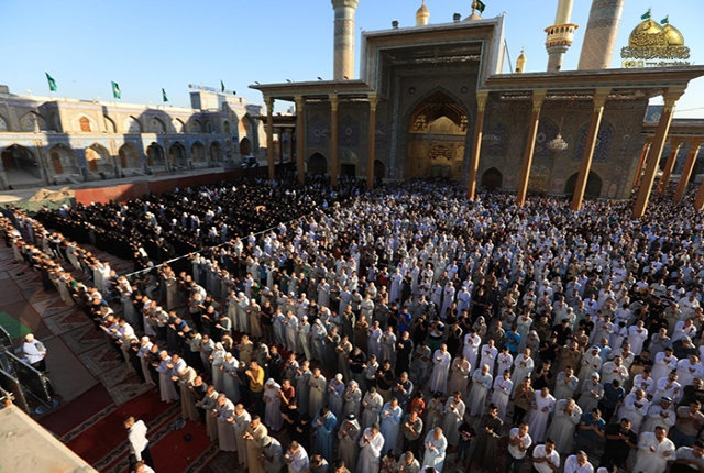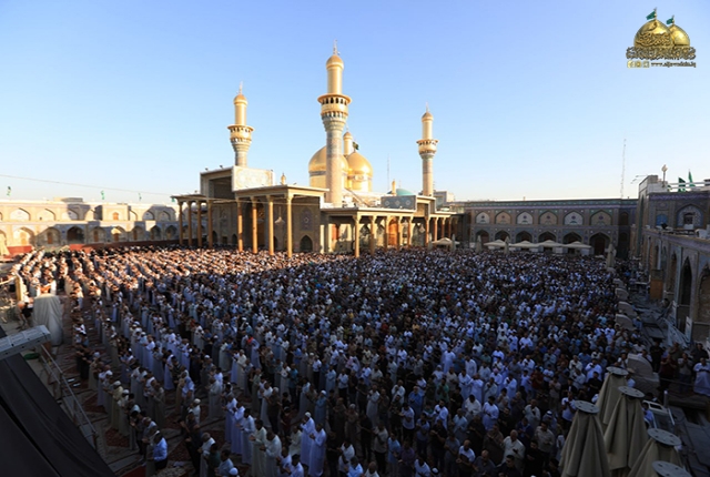 من جوار حرم الإمامين الكاظمين "عليهما السلام" جموع الموالين تحتشد لأداء صلاة عيد الأضحى المبارك