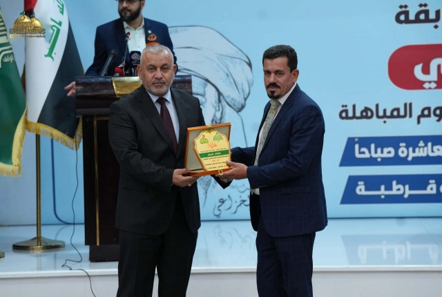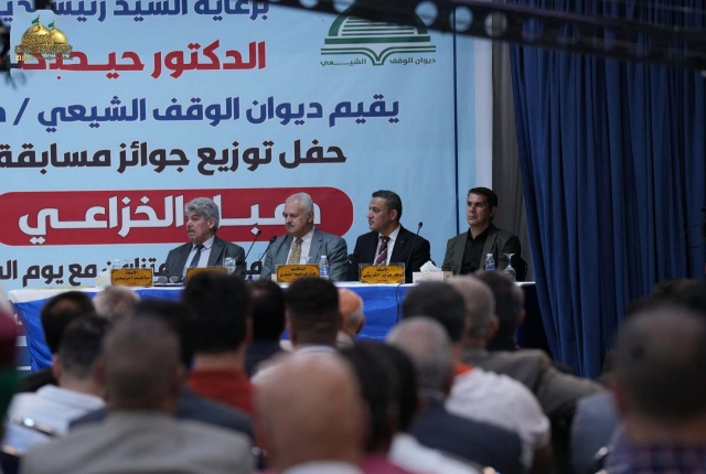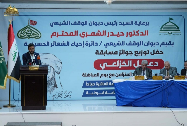تلبية للدعوة التي وجهها ديوان الوقف الشيعي/دائرة إحياء الشعائر الحسينية، شارك وفد العتبة الكاظمية بحضور الحفل الختامي لتوزيع جوائز الفائزين بمسابقة دعبل الخزاعي للشعر العربي العمودي، والتي أقيمت بمناسبة حلول عيد الله الأكبر عيد الغدير الأغر، وبالتزامن مع يوم المباهلة، وذلك على قاعة قرطبة في فندق المنصور ميليا.