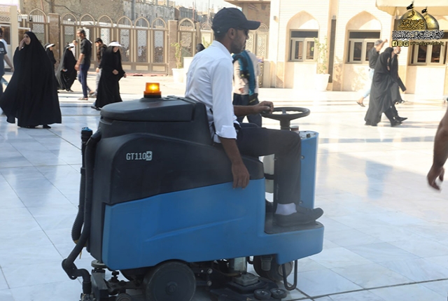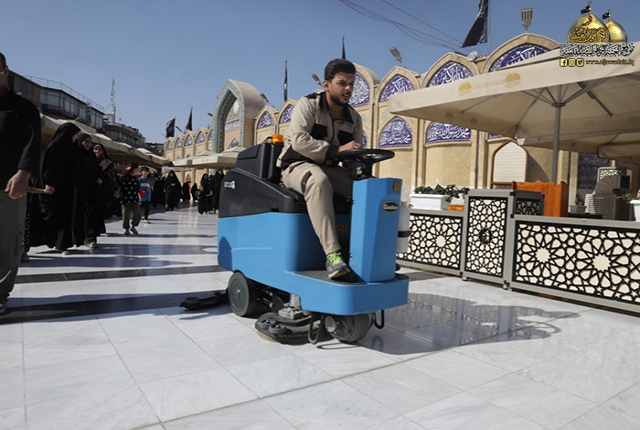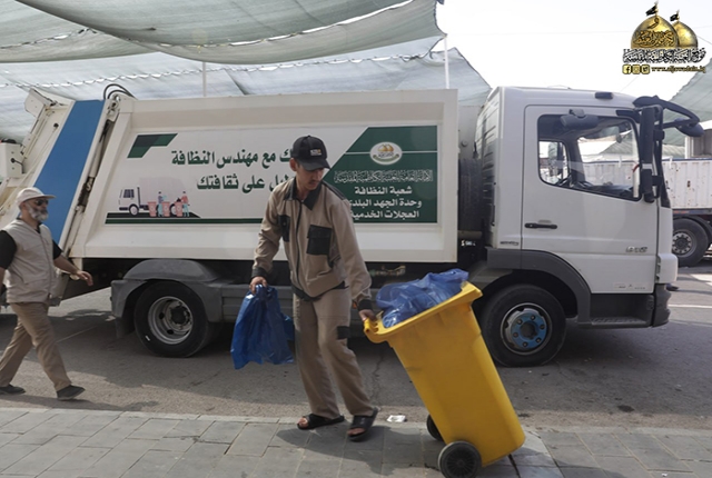 وبيّن مدير شعبة النظافة أن هناك مجموعة من الأعمال تقوم بها آليات وحدة الجهد البلدي إذ تم تهيئة (22) عجلة خدمية بين كابسة، وكانسة، وعجلات غسل الأرضية والحمل لجمع النفايات وتفريغ الحاويات ورفعها للحيلولة دون تكدّسها ونقلها إلى الأماكن المخصصة لها بعيداً عن الصحن الشريف والشوارع المؤدية له للحفاظ على ديمومة النظافة.
