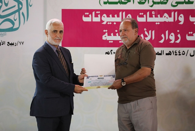 برعاية مباركة من قبل الأمين العام للعتبة الكاظمية المقدسة خادم الإمامين الكاظمين الجوادين الدكتور حيدر حسن الشمري، أقيم في رحاب الصحن الكاظمي الشريف حفل تكريم كوكبة من أصحاب المواكب والهيئات الحسينية والبيوتات والجوامع والحسينيات في مدينة الكاظمية المقدسة والمناطق القريبة منها، ضمن فعاليات مهرجان ربيع الولادة الخامس تحت شعار: (على صِراط أحمد)، احتفاءً بجهودهم المباركة ودورهم الفاعل وتعاونهم مع الأمانة العامة للعتبة الكاظمية المقدسة في تقديم الخدمة المتميزة للزائرين المتشّرفين بزيارة الإمامين الكاظمين الجوادين "عليهما السلام"، وإيواء جموع الوافدين من داخل العراق وخارجه خلال مليونية أربعينية الإمام الحسين "عليه السلام".