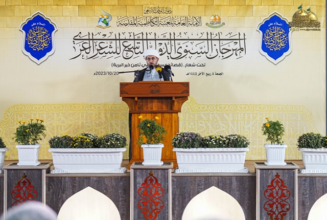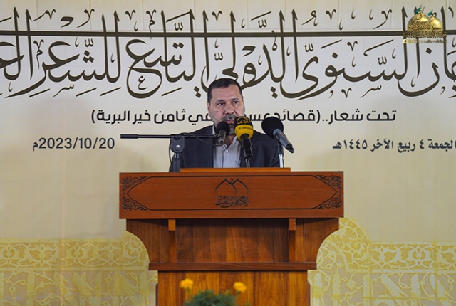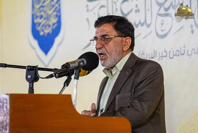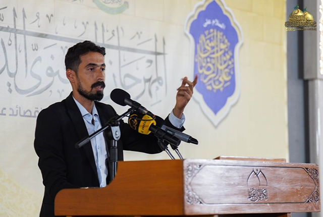 وأضاف فضيلته: غاياتنا في هذا المهرجان هو توظيف فن الشعر العربي في تعريف الناس بأهل البيت "عليهم السلام" عملا بوصية الإمام الرضا "عليه السلام" في إحياء أمرِ محمدٍ وآل محمد قائلا: (رحِمَ اللهُ عبدًا أحيا أمرنا، فقيل له: فكيف يُحيى أمرُكم؟ قال: يتعلّمَ علومَنا ويُعلـِّمُها الناسَ، فإنّ الناسَ لو عَلِموا محاسِنَ كلامِنا لاتّبَعونا) لذلك كان لا بد من تسليط الضوء على شخصية كان امتدادها نابع من جده المصطفى محمد "صلى الله عليه وآله وسلم" شخصية تطرفت جغرافيا في بلاد المسلمين بـ (طوس).. لكنها تمركزت في نفوس الموالين وتربعت على عرش قلوب العاشقين.