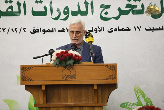 وأضاف: أن الدورات القرآنية فرصة قيمة وعظيمة لنا جميعا ولا يجب أن نفرط بها إذا ما عرفنا أن القرآن الكريم هو أول الثقلين ومن ثم الثقل الثاني عترة النبي المصطفى "صلى الله عليه وآله وسلم" ولا بد من التمسك بهما لضمان الهداية وعدم الضلال لهذا ينبغي علينا تعلم القرآن الكريم وفهم آياته والتقرب إلى الله عز وجل بالمداومة على تلاوة كتابه وتطبيق آياته وتعاليمه في حياتنا.. لذلك أوصانا الإمام جعفر الصّادق "عليه السلام" قائلا: (يَنْبغي للمؤمن أنْ لا يموت حتّى يَتعَلّم القرآنَ، أو يكونَ في تعلّمه)).