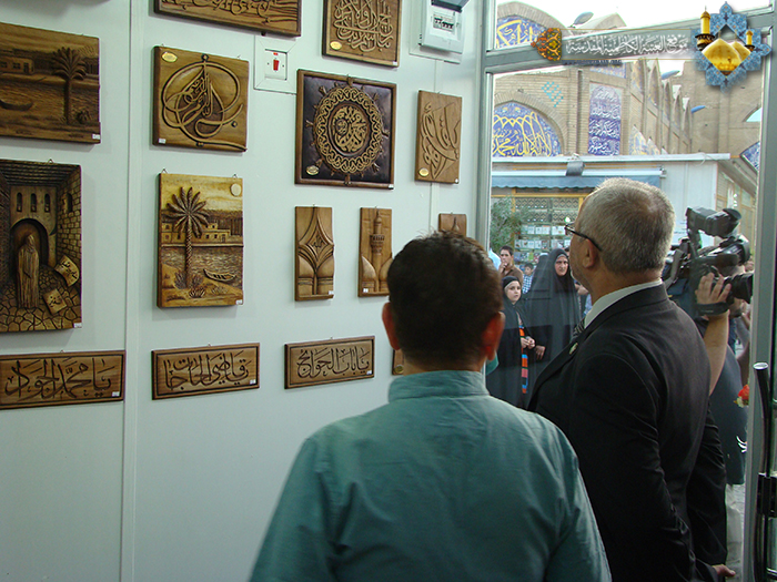 بعدها قام المشاركون في حفل الافتتاح بجولة في أروقة المعرض ليطلعوا على المعروضات الفنية القيّمة والمنفردة التي صنعت وصاغت بأنامل الخَدَمَ العاملين في شعبة النقش والزخرفة ووحدة الحفر على المرمر، شاهدوا خلالها اللوحات الفنية الجميلة التي صورت معالم مدينة الكاظمية المقدسة، فضلاً عن اللوحات التي نقشت عليها الآيات القرآنية والحكم والأحاديث الشريفة للرسول الأكرم وآله الأطهار"عليهم السلام"، كما شمل الجانب الآخر من المعرض جناح الحفر على المرمر وقد تجسدت فيه جمال وروعة هذا الفن العريق. يذكر ان تلك النتاجات والأعمال الفنية قد صنعت من الخشب والحجر القديم للحرم الكاظمي الشريف كما سيكون هناك بيع مباشر للزائرين الكرام لتلك المنتوجات الحرفية .
