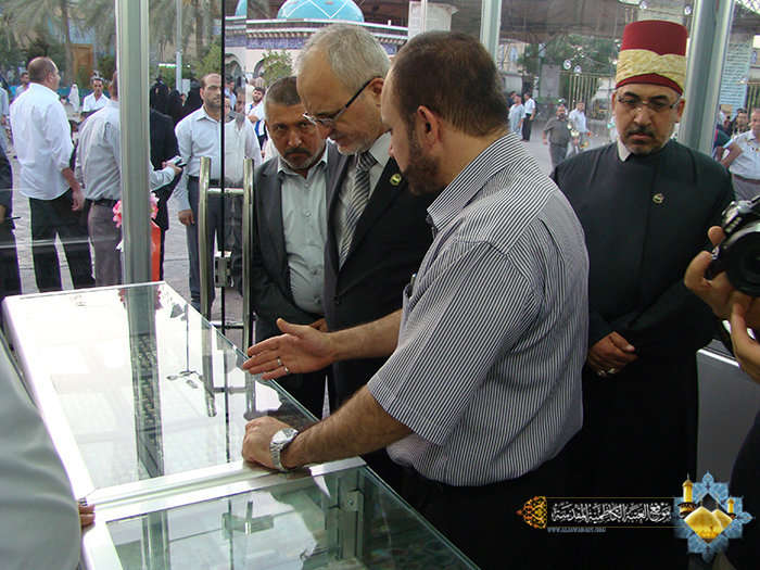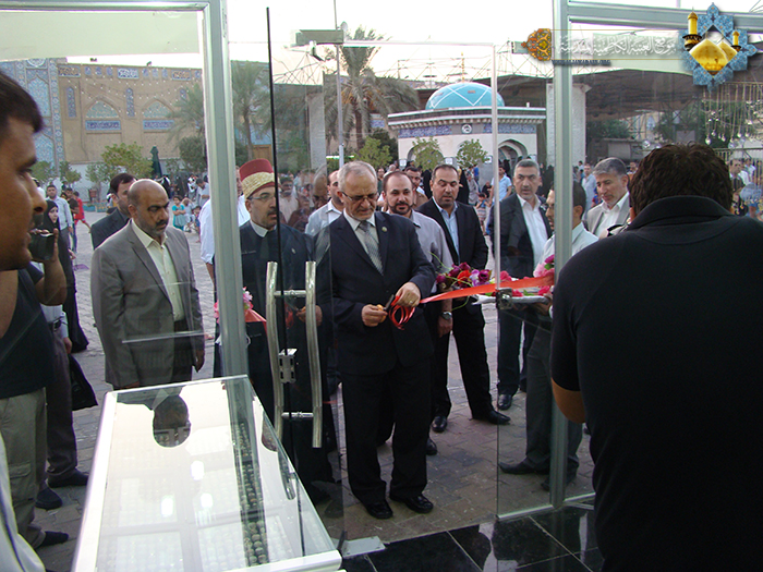 افتتح الأمين العام للعتبة الكاظمية المقدسة أ . د "جمال الدباغ" معرض النقش والزخرفة الذي يقع عند مدخل باب المراد مساء السبت 6/9/2014م والذي يتزامن مع الذكرى العطرة لولادة شمس الشموس الإمام علي بن موسى الرضا "عليه السلام" بحضور أعضاء مجلس الإدارة وعدد من مسؤولي الأقسام وخَدَمَة الإمامين الجوادين"عليهما السلام" .