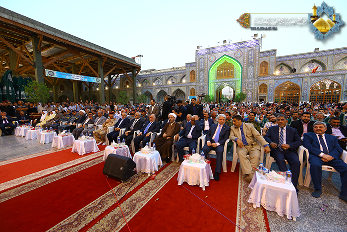 تجددت أفراح محبي أهل بيت النبوة "عليهم السلام" في يوم العهد المعهود، والميثاق المأخوذ والجمع المشهود، يوم إكمال الدين وإتمام النعمة والتنصيب الإلهي يوم الغدير الأغر, حيث توشحت رحاب الإمامين الجوادين "عليهما السلام" برايات الفرح والبهجة والسرور بهذه الذكرى العطرة, إذ أقامت الأمانة العامة للعتبة الكاظمية المقدسة حفلها البهيج بهذه المناسبة العطرة. وقد حضر الاحتفال رئيس الوزراء الدكتور حيدر العبادي وعدد من الوزراء وأعضاء مجلس النواب ووجهاء وشيوخ وأعيان مدينة الكاظمية المقدسة وممثلو الدوائر الحكومية في المدينة المقدسة وجمع غفير من زائري الإمامين الجوادين "عليهما السلام". واستهل الحفل بتلاوة آيات من الذكر الحكيم شنّف بها قارئ العتبة الحاج "همام عدنان " أسماع الحاضرين، تلتها كلمة الأمانة العامة للعتبة الكاظمية المقدسة وألقاها أمينها العام أ.د "جمال الدباغ" قائلاً: "إن أحتفالنا بمناسبة عيد الغدير الأغر هو احتفاء بولاية القيم والمثل العليا واحتفاء بتحقيق العدالة الانسانية وتطبيق أحكام الله وعلى الجميع أن يجعلوا من عيد بيعة الغدير منطلقاً لبناء الذات والمجتمع والسير على النهج القويم والالتزام بتعاليم الرسالة الاسلامية السمحة , ولا يمكن أن نجعلها تمر مروراً عابراً ليس لها تأثير على نفوسنا وسرائرنا , كما اننا نؤكد على الصمود في طريق الحب والولاء لآل بيت النبوة الأطهار "عليهم السلام " .