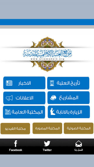اطلقت الأمانة العامة للعتبة الكاظمية المقدسة/ تقنية المعلومات التطبيق الرسمي الخاص بالهواتف الذكية، بنظامي التشغيل " iOS" ، "Android " لتوفير فرصة التواصل مع زائري ومتصفحي موقع العتبة الكاظمية المقدسة والذي يتميز باستخدام تقنية "RSS " ويمكنهم التعرف على أخبار العتبة المقدسة ونشاطاتها وفعالياتها وإعلاناتها ومشاريعها فضلاً عن المكتبة العامة والمكتبة الصوتية، والصورية، والمرئية، وتقديمه خدمة الزيارة بالإنابة، ضمن شبكات التواصل الاجتماعي .