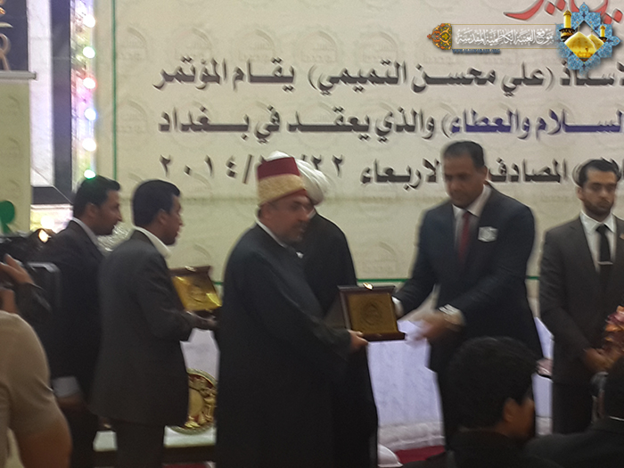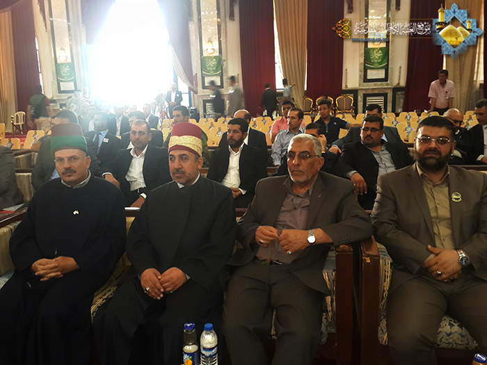 بمناسبة حلول شهر محرم الحرام وذكرى استشهاد ريحانة رسول الله الإمام الحسين "عليه السلام" شارك وفد خَدَمَة العتبة الكاظمية المقدسة "عليهما السلام" بحضورهم المؤتمر الأول " محرم رسالة السلام والعطاء " المنعقد تحت شعار: ( الحسين يوحدنا ) والذي أقيم برعاية محافظة بغداد بالتعاون مع الحضرة القادرية ، وبحضور محافظ بغداد الأستاذ "علي التميمي" وممثلو ديوان الأوقاف الشيعية والسنية والمسيحية والصابئة المندائية, وتليت خلاله كلمات عدة أكدوا فيها أن الإمام الحسين "عليه السلام" هو منار لكل الأحرار في العالم، وشعلة مضيئة نستلهم منها الدروس والعبر في التضحية والفداء ووحدة الكلمة ودعوة للسلام والتسامح ونبذ الفرقة ومنطلق للحفاظ على عقيدتنا الإسلامية، وبمبادئه "عليه السلام" نستطيع إرساء دعائم العدل والمساواة وإشاعة أجواء المحبة والتآخي والتسامح بين جميع مكونات الشعب العراقي بمختلف أديانه ومذاهبه وقومياته، وإن ثورته "عليه السلام" تجدد فينا كل عام العزم على نصرة الحق والتصدي للإرهاب التكفيري الذي يتعرض له الشعب العراقي العزيز. وفي ختام المؤتمر نقل الوفد تحيات الأمانة العامة للعتبة الكاظمية المقدسة, مشيداً بهذه الجهود والمساعي المباركة في نشر الثقافة الحسينية وتوسيع دائرة الوعي المعرفي لدى أفراد المجتمع الإسلامي .