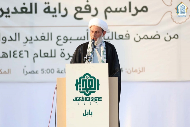 وشهد الحفل مراسم رفع راية الغدير وسط أجواء ولائية مباركة، كما تخلله إلقاء عدد من الكلمات التي استعرضت عظمة هذه المناسبة وعمقها العقائدي، حيث يُعد عيد الغدير يوماً محورياً في التاريخ الإسلامي، أُعلن فيه اكتمال الدين وتمام النعمة بتنصيب الإمام علي "عليه السلام" أميراً للمؤمنين، ووريثاً للرسالة، وحاملاً لراية الهداية.