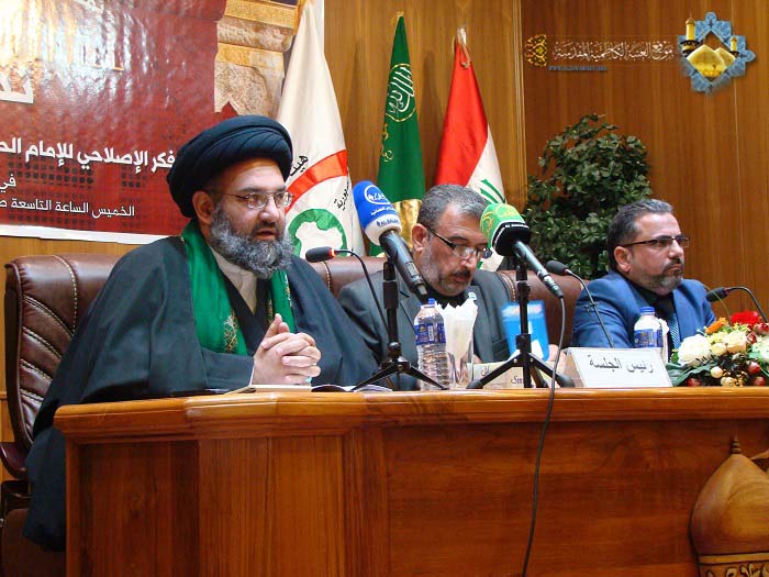 بعدها جاء دور الباحث الأستاذ "محمد المسعودي" مدير قسم التحليل والتقييم في هيئة النزاهة ليقدم بحثه الموسوم " توظيف معطيات الثورة الحسينية في استراتيجيات مكافحة الفساد" ووضح فيه رؤية الإصلاح في بلدنا العزيز ليست من اختصاص الجهات الرقابية فحسب، وإنما هي مسؤولية العلماء والكتل السياسية والمجتمع بمثقفيه وإعلامييه ومنظماته الاجتماعية التي لها الدور المهم يمكن أن يرسم وفق الدستور والقوانين لنتمكن من صياغة إنموذج إصلاحي يناسب المرحلة وتوزع فيه الأدوار، كما تطرق الباحث إلى الحركة الإصلاحية للإمامين الجوادين "عليهما السلام" ودورهم الكبير في الحفاظ على المكاسب الإصلاحية الحسينية من خلال مؤسستهم الدينية والعلمية .. وقد شهدت فقرات جلسة الندوة مداخلات من قبل السادة الحاضرين أثرت الندوة العلمية من حيث الطرح والحوار.