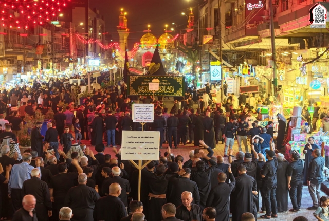وشارك تلك الجموع المعزّية موكب خدّام الإمامين الجوادين "عليهما السلام"، إذ تجمهرت المواكب المعزّية في رحاب الصحن الكاظمي الشريف لتختتم تلك الشعائر بمجلس تأبيني مستذكرين خلالها سيد شباب أهل الجنة الإمام المجتبى "عليه السلام"، وأبعاد مسيرته الإنسانية والإيمانية والرسالية والاجتماعية، ومواقفه الصلبة في الحفاظ على مفهوم المسيرة المحمدية، بعدها ابتهل المعزّون إلى الله العلي القدير بالدعاء بتعجيل فرج مولانا المهدي المنتظر "أرواحنا لمقدمه الفدا".