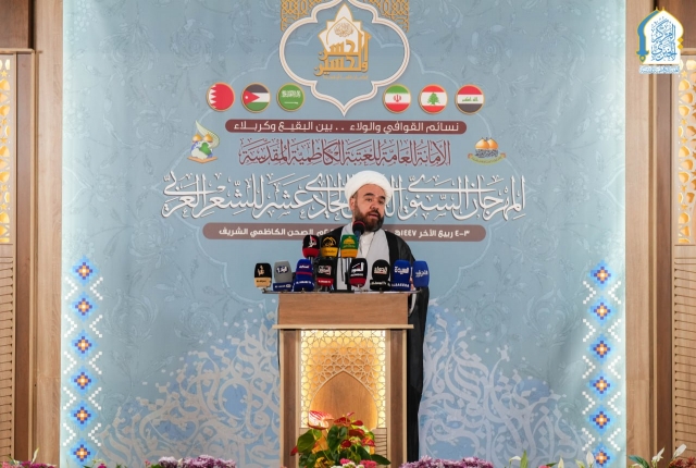 مهرجان شعري أكد على أن يكون للكلمة الأصيلة والقافية السليمة موقفاً واضحاً في عودتها إلى محافلنا وتجمعاتنا، وفرصة طيبة للشعراء والأقلام المبدعة بأن يحلقوا في ميدان الشعر والأدب ليعبروا عن خلجاتهم واحساسهم ووجدانهم وينبروا لأداء رسالتهم السامية من خلال قصائدهم الغراء وتعريف الأمة بالمزيد من الموروث الشامخ للأئمة الأطهار "عليهم السلام"، إذ اختتمت فعاليات المهرجان السنوي الدولي الحادي عشر للشعر العربي الذي أقامته الأمانة العامة للعتبة الكاظمية المقدسة تحت شعار: (نسائم الولاء .. بين البقيع وكربلاء)، بحضور شخصيات ثقافية واجتماعية، وبمشاركة نخبة من الشعراء والأدباء من داخل العراق وخارجه ممن جاءوا ليساهموا برفيف نبضات قلوبهم ويلقوا بظلال قصائدهم الغراء بأروع ما تجود به خلجاتهم من عذب الكلام ودرر منتقاة وروائع مصطفاة في هذا المُلتقى الأدبي عن ريحانتي رسولنا الأكرم "صلى الله عليه وآله وسلم" إمامنا الحسن المجتبى وسيد الشهداء إمامنا الحسين "عليهما السلام"، وإغناء المكتبة الأدبية بالشعر العربي الهادف.