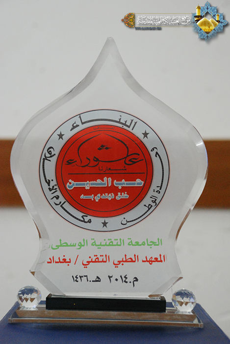 شارك وفد العتبة الكاظمية المقدسة في الندوة التي أقامتها الجامعة التقنية الوسطى / معهد الطبي التقني / بغداد تزامناً مع ذكرى عاشوراء الأليمة تحت شعار: ( حب الإمام الحسين "عليه السلام" خلقٌ نهتدي به) بحضور نخبة من الشخصيات الجامعية وعدد غفير من الطلبة، واشتملت الندوة على كلمات وفعاليات عدة كان من بينها مشاركة لفرقة إنشاد الجوادين "عليهما السلام". كما حصلت الأمانة العامة للعتبة الكاظمية المقدسة على درع المشاركة تقديراً لدورها الكبير الذي تسعى فيه ديمومة تواصلها ومشاركاتها في مختلف الأنشطة التي تقوم بها المؤسسة التربوية والأكاديمية، ودعمها لشريحة الشباب المؤمن الذي تعتبره النواة الأولى للفكر الحسيني، وتحاول من خلاله الحفاظ على مكتسبات الإنسانية وديمومة مبادئ النهظة الحسينية.