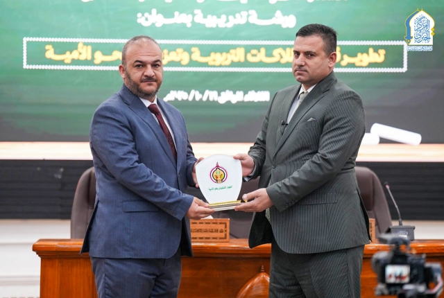 واختتمت فعاليات الورشة بتقديم درعٍ تذكاري إلى الأمانة العامة للعتبة الكاظمية المقدسة وذلك تقديراً لجهودها المباركة في دعم المشاريع العلمية والتربوية، وعرفاناً بإسهامها الفاعل في تعزيز أواصر التعاون البنّاء مع المؤسسات التعليمية، بما يعزّز مسيرة التنمية المعرفية ويخدم تطلعات النهوض بالواقع التربوي في عراقنا العزيز.