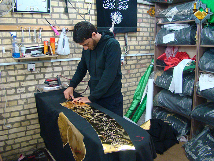 فن التطريز .. من الفنون التي امتازت بالعراقة والإبداع، بالرغم من التطورات والابتكارات التي رافقت ذلك الفن إلا إنه استطاع أن يحافظ على الكثير من خصائصه وسماته البشرية، وقد حرصت العتبة الكاظمية المقدسة أن تحتضن بعض هذه الأنامل المبدعة التي أجادت هذه الحرفة، لكي تنتج لنا اليوم باقة متنوعة من الأوشحة المطرزة بكلمات نورانية وأقوال أئمة أهل البيت "عليهم السلام" لكي تعلق وتُوضع في الحرم الكاظمي المقدس وأعمدة المشهد الشريف في المناسبات الدينية فضلاً عن تصنيعها لرايات الإمامين الجوادين "عليهما السلام" ولأجل معرفة المزيد عن دور وحدة التطريز التابعة لقسم الشؤون الخدمية في العتبة الكاظمية المقدسة وأهم الأعمال والنتاجات كان لنا لقاء مع مسؤولها السيد "سلام كريم عبود" وتحدث لنا قائلاً: إن عملية التطريز تمر بمراحل عدّة ابتداءً من اختيار قطعة القماش حسب القياس المطلوب ليتم وضع مادة اللاصق عليها، أما الأنواع المستخدمة من القماش هي "القديفة، والستن، الكتان" المتوافرة في الأسواق المحلية، بعدها يأتي اختيار العبارات حسب المناسبة الدينية ونوعية الخط والزخرفة المستخدمة فيها، هنا تعتمد على ذوق الخطاط فإن جميع أنواع الخط مناسبة ولكن، الأغلب الأعم يستخدم خط الثلث لجماليته وتناسق حروفه مصحوباً بالزخارف النباتية والإسلامية، بعد ذلك يتم تنسيق الخيوط وألوانها وأنواعها وبعض المكملات لعملية التطريز.