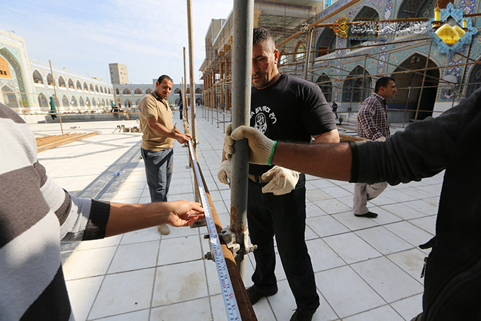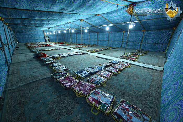 باشرت الملاكات الهندسية والفنية في قسم الشؤون الهندسية وقسم الميكانيك وقسم الكهرباء في العتبة الكاظمية المقدسة، ضمن الخطة المعدة لاستقبال زيارة أربعينية الإمام الحسين "عليه السلام" بنصب عشر خيمات كبيرة بمساحة تقارب 2500 م2 في صحن توسعة السيد محمد باقر الصدر "قدس سره" في رحاب الصحن الكاظمي الشريف، لتأمين إيواء ومبيت الزائرين الكرام الوافدين من داخل العراق وخارجه لزيارة الإمامين الجوادين ليجعلوا من هذا المكان الطاهرة محطة انطلاق يتجهوا خلالها نحو كربلاء المقدسة، فضلاً عن فتح دور الضيافة التابعة للعتبة المقدسة والتنسيق مع حسينيات وجوامع مدينة الكاظمية المقدسة، كما شملت الخدمات توفير آليات لنقل الزائرين من وإلى مساكن الأيواء وتوفير وجبات الطعام وكلّ سبل الراحة لهم بعد تحملهم عناء الطريق لإحياء زيارة الأربعين المباركة.