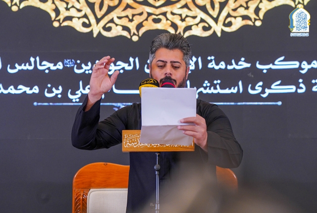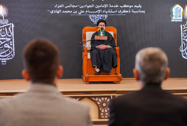 استذكاراً لشهادة نبراس أهل بيت النبوة "عليهم السلام" الإمام علي بن محمد الهادي "عليه السلام"، ذلك النور الإلهي الذي أضاء الدروب بحكمته وعلومه، وملأ القلوب يقيناً والأرواح سلاماً، وبرعاية مباركة من الأمين العام للعتبة الكاظمية المقدسة خادم الإمامين الكاظمين الجوادين الدكتور حيدر عبد الأمير مهدي، أقام موكب خدّام العتبة الكاظمية المقدسة مجلساً عزائياً بهذه المناسبة الأليمة في رواق سيدنا عبد الله بن عبد المطلب "عليه السلام"، واستضيف خلاله خطيب المنبر الحسيني سماحة السيد علي الجابري، الذي أفاض في محاضراته حول السيرة المباركة للإمام الهادي "عليه السلام" مستعرضاً أبعاد شخصيته القيادية، ودوره الريادي في حفظ التراث الإسلامي.
