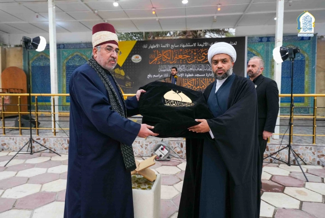وأوضح: إنَّ الأمانةَ العامّةَ للعتبةِ الكاظميّةِ المقدّسةِ وهي تُشاركُكم هذه المناسبةَ العزيزةَ، تدعو الموالينَ جميعًا إلى استلهامِ الدروسِ والعِبَرِ من سيرةِ الإمامِ الكاظمِ "عليهِ السلام" وتَرجَمتِها سلوكًا عمليًّا في حياتِنا اليوميّة من خلال التمسّكِ بالأخلاقِ وتعزيزِ روحِ التعايشِ وخدمةِ المجتمعِ، والوقوفِ صفًّا واحدًا بوجهِ الفسادِ والانحرافِ ونُصرةِ الحقِّ).