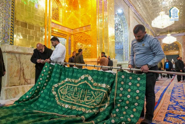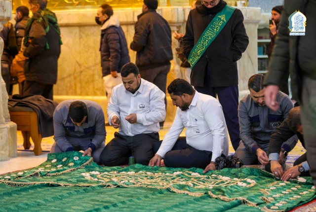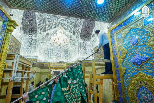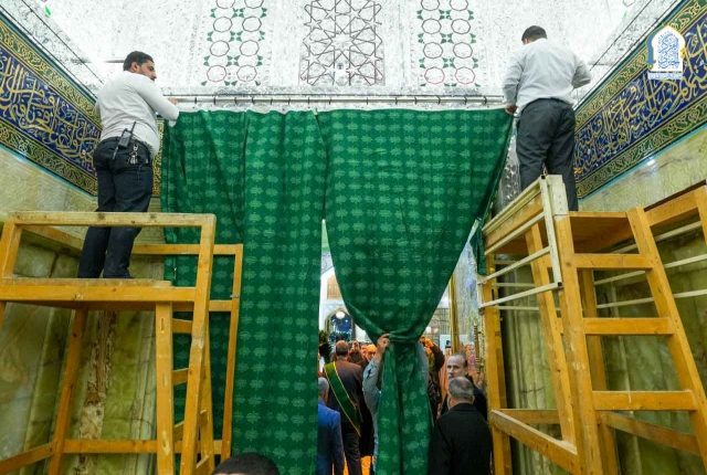 استبدال ستائر مدخل حرم الشريف ابتهاجًا بذكرى ولادة الإمام محمد الجواد "عليه السلام"