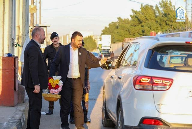 ابتهاجاً بذكرى ولادة الإمام محمد بن علي الجواد "عليه السلام"، وضمن فعاليات برنامج "نسائم الجواد الثقافي"، قام خَدَمةُ العتبة الكاظمية المقدسة بتوزيع الزهور على المواطنين والقوات الأمنية المتواجدة في مدينة الكاظمية المقدسة، تعبيراً عن مشاعر الفرح والولاء بهذه المناسبة العطرة.