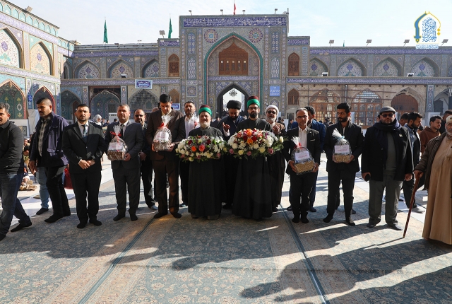 في أجواء إيمانية غامرة بالفرح والسرور، توافدت كوكبة من خدّام العتبة الحسينية المقدسة حاملين باقات الزهور وقلوبهم عامرة بالمحبة والولاء للتشرّف بزيارة الإمامين الكاظمين الجوادين "عليهما السلام" وإحياء ذكرى ولادة غصن الشجرة السرمدية الإمام محمد بن علي الجواد "عليه السلام".