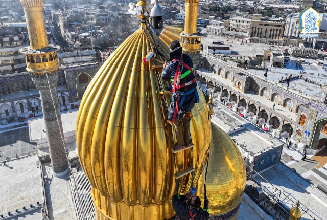 وتضمنت الأعمال جلي القباب والمآذن بشكل الكامل وبدقة عالية، لإزالة عوامل الأكسدة والترسبات الناتجة عن الظروف الجوية وتقلبات المناخ، التي قد تؤثر على لمعان وبريق البلاطات الذهبية المكسوة بها، ما يسهم في المحافظة على بريقها وسلامتها وإدامة عمرها الافتراضي ومنع تآكلها جرّاء هذه المؤثرات البيئية.