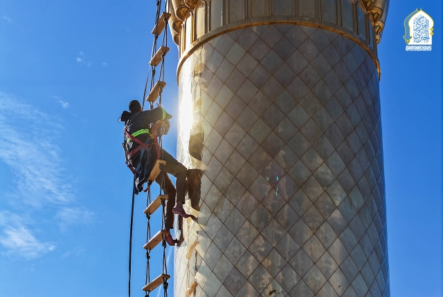 استعداداً لزيارة الخامس والعشرين من شهر رجب الأصب، ذكرى استشهاد حليف السجدة الطويلة الإمام موسى بن جعفر الكاظم "عليه السلام" قام الفريق الفني المتخصص في وحدة الأشغال التابعة لقسم الشؤون الهندسية والمشاريع الاستراتيجية في العتبة الكاظمية بتنفيذ أعمال التنظيف والجلي الخاصة لمآذن وقبتي حرم الإمامين الهمامين الكاظمين الجوادين "عليهما السلام".