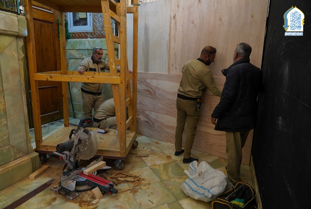 ضمن الاستعدادات الخدمية المتواصلة لاستقبال جموع الزائرين خلال الزيارة الرجبية المباركة، تأهّبت فرق وحدة النجارة والألمنيوم التابعة لشعبة الصيانة الكهروميكانيكية بتنفيذ حزمة من الأعمال الخدمية والفنية داخل أروقة الحرم الكاظمي الشريف كان في مقدمتها نصب القواطع الخشبية لتنظيم حركة الزائرين وضمان انسيابية الدخول والمغادرة، وتأتي هذه الإجراءات في إطار الجهود الرامية إلى تخفيف الزخم المتوقع خلال ساعات الذروة، ولا سيما في أوقات توافد الأعداد الكبيرة من الزائرين.
