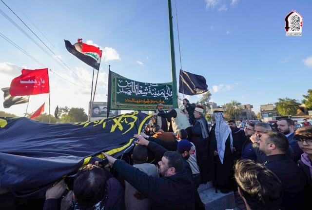 رفع راية الإمام كاظم الغيظ "عليه السلام" في مدينة الشعلة إيذانًا بإعلان العزاء