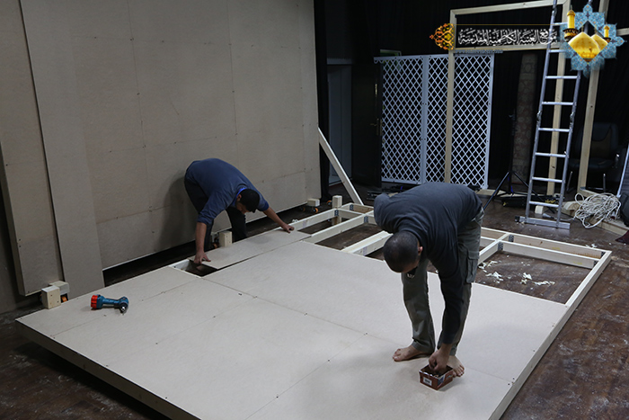 شعبة النجارة تقوم بأعمال ديكورات استوديوهات تلفزيون الجوادين