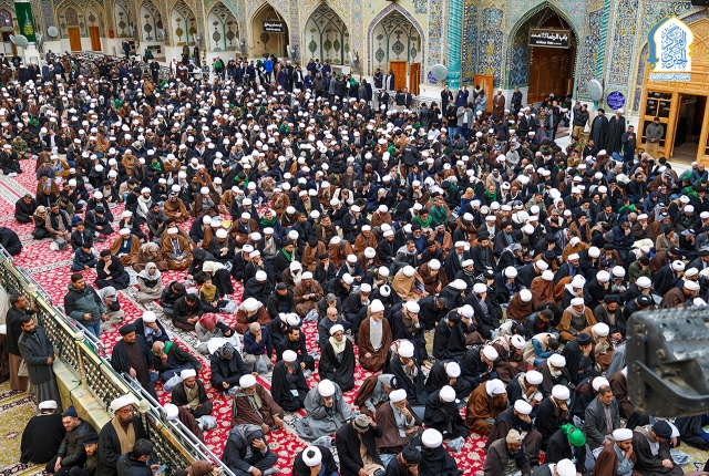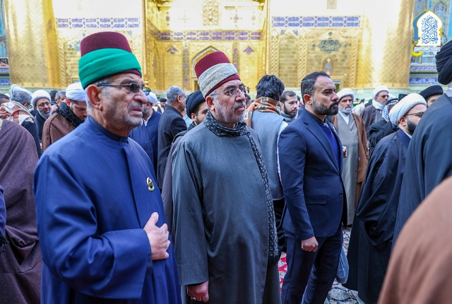 وقد أدى الوفد الصلاة والدعاء، إلى جانب كوكبة من العُلماء ورجال الدين وطلبة الحوزات والمدارس الدينية، فضلاً عن كوكبة من شيوخ العشائر والشخصيات الاجتماعية الذين توافدوا لتوديع العالم الجليل واستذكار مسيرته المباركة.