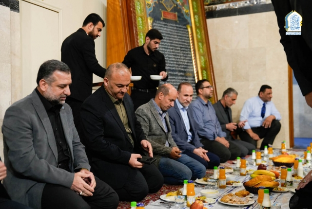 وشهدت المأدبة حضور أعضاء مجلس الإدارة الموقر، إلى جانب نخبة من ملاكات ومديري أقسام العتبة المقدسة، شملت قسم القرآن الكريم، وقسم العلاقات العامة، وقسم الشؤون الفكرية والثقافية، وقسم الشؤون الإدارية والمالية والقانونية، وقسم المخازن العامة، ومكتب الأمانة العامة للعتبة المقدسة، فضلاً عن شعبة الإعلام.