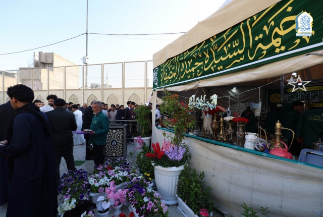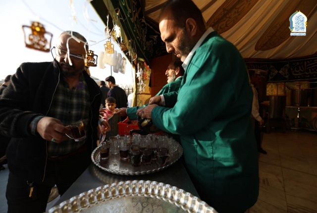 موكب خدّام العتبة الكاظمية المقدسة يقدّم الضيافة للزائرين احتفاءً بعيد الفطر المبارك