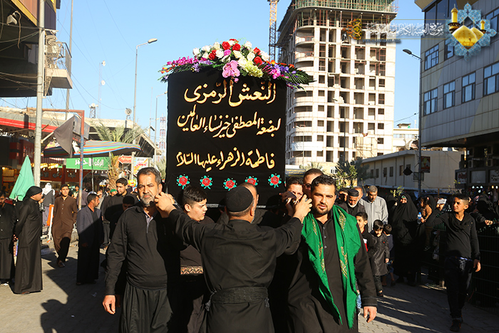 أحياءً للذكرى الأليمة لاستشهاد سيدة نساء العالمين فاطمة الزهراء "عليها السلام"، نظمت الأمانة العامة للعتبة الكاظمية المقدسة عصر الخميس 5/3/2015م مسيرة عزائية حاشدة شارك فيها خَدَمَة الإمامين الكاظمين "عليهما السلام" وأهالي مدينة الكاظمية المقدسة، حيث تجمهر المعزون عند حسينية آل الصدر في شارع باب المراد وانطلقوا بمسيرة ولائية حاشدة حملوا فيها النعش الرمزي للسيدة الزهراء معلنين فيها عن حزنهم بهذا المصاب الجلل، ومرددين خلالها الهتافات والردات ومستذكرين فيها هذه الفاجعة الأليمة التي أفجعت قلوب المؤمنين . واختتمت بمجلس للعزاء الحسيني في خيمة باب المراد. وفي ختامها ابتهل المعزون إلى الباري عز وجل أن يحفظ العراق وشعبه من كل سوء ووالدعاء بالنصر المؤيد لقوات الحشد الشعبي وهي تخوض معارك الشرف للدفاع عن العراق ومقدساته .