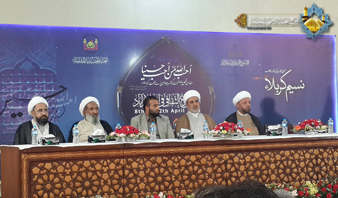 شارك وفد العتبة الكاظمية المقدسة الذي ترأسه مسؤول قسم الشؤون الفكرية والثقافية سماحة الشيخ عدي الكاظمي بفعاليات أسبوع نسيم كربلاء الثقافي الثاني الذي أقامته العتبةُ الحسينية المقدّسة بالتعاون مع جامعة الكوثر وبمشاركة العتبتين المقدّستين الحسينية والعباسية في العاصمة الباكستانية إسلام آباد، وسط حضور رسمي و شعبي كبير كان من بينهم ممثلو المرجعيات الدينية ومؤسس جامعة الكوثر الشيخ محسن علي النجفي، ونائب الأمين العام لحزب وحدة المسلمين الشيخ محمد أمين شهيدي، ووزير الشؤون الدينية والمذهبية سردار يوسف، ورئيس جامعة الكوثر الدينية الشيخ أنور علي النجفي، وعدد من الشخصيات الاجتماعية وأساتذة الجامعات. وشهدت فعالياته على إقامة المسابقة القرآنية والتي شارك فيها قارئ العتبة الكاظمية المقدسة الحاج منير عاشور، كما كان هناك مسابقة شعرية، ونشاطات نسوية في تعليم أصول وفروع الدين الخاص بطالبات الجامعة، ومعرض الكتاب لمؤسسة البلاغ المبين، وجلسة حوارية في إسلام آباد لطالبات مدرسة الكوثر النسوية، ومسابقة لخطباء المنبر الحسينيّ، وإقامة احتفالية بمناسبة ولادة الطاهرة الزكية السيدة فاطمة الزهراء عليها السلام . وعلى هامش فعاليات الأسبوع الثقافي (نسيم كربلاء) التقى وفد العتبات المقدسة بوزير الأمور الدينية والمذهبية في باكستان الأستاذ سردار يوسف، وجرى خلال اللقاء تباحث الأمور التي تخصّ المجتمع الإسلامي وكيفية العمل ووضع الخطط الكفيلة لتقريب وجهات النظر بين المذاهب الإسلامية وتوحيد الصفّ أمام تلك الهجمات الشرسة التي يتعرّض لها المجتمع المسلم في كافة بقاع الأرض، والوقوف بحزمٍ أمام الأفكار المتطرّفة.