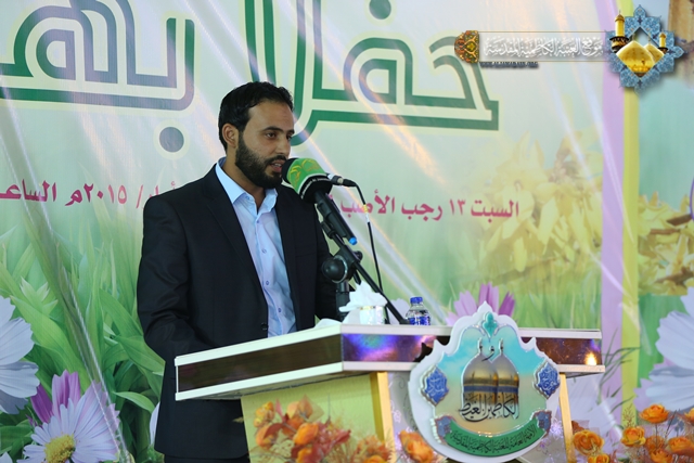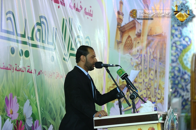 بعدها ارتقى المنصة سماحة الشيخ حيدر النصراوي ليلقي محاضرته الدينية بهذه المناسبة مستعرضاً فيها شمائل سيرة أمير المؤمنين الشريفة وسر شخصيته، ومنهج عدالته، وشهادات من ارتبط به وبفكره الإنساني مستشهداً ببعض الروايات التي وردت في كتاب علي في عيون معاصرة. وشهد الحفل مشاركة للشاعر نزار الطالقاني بقصيدة رائعة عنوانها "محراب العشق" ومنها هذه الأبيات: القلبُ في محرابِ عشقكَ راهبُ وصلاته في الحبِ فرضٌ واجبُ