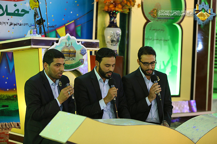 وكيف لا ..؟! وكريم الآل شرّفهُ ضيفاً كبدرٍ ببدر الشهر يقترنُ وكان لفرقة إنشاد الجوادين مشاركة بمجموعة من الموشحات والأناشيد الإسلامية، وكان مسك ختامها بمشاركة الرادود الحسيني مصطفى الكناني بالأهازيج والردات التي أضفت روح البهجة والسرور في نفوس زائري الإمامين الجوادين "عليهما السلام".