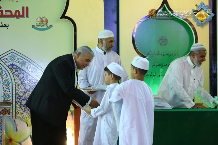 تزامناً مع قرب اختتام الجلسات القرآنية المقامة بالصحن الكاظمي الشريف في شهر رمضان المبارك، أقامت الأمانة العامة للعتبة الكاظمية المقدسة / قسم الشؤون الفكرية والثقافية ـ دار القرآن الكريم، يوم الأربعاء 15/7/2015م حفل تكريم المشاركين في الجلسات القرآنية الرمضانية والختمات القرآنية والجلسات التعليمية والأساتذة والقراء المشرفين والقائمين عليها، بحضور الأمين العام للعتبة الكاظمية المقدسة الأستاذ الدكتور جمال الدباغ وعدد من أعضاء مجلس الإدارة و قارئ جمهورية مصر العربية الشيخ أحمد عبد الحي وعدد من الاساتذة والمهتمين بالشأن القرآني وجمع غفير من زائري الإمامين الجوادين "عليهما السلام".