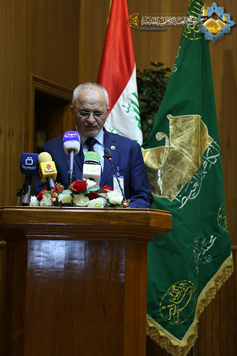 وكان لسماحة السيد حميد محمود الحسيني رئيس اتحاد إذاعات وتلفزيونات العراق كلمة بهذه المناسبة أشار فيها إلى أهمية اللقاء والتواصل في رحاب الإمامين الجوادين "عليهما السلام"، لأنهما مصدر للإنسانية فيجب أن تستلهم المؤسسات الإعلامية منهم هذه السمة وأن يكونوا للإنسانية جمعاء وينتموا للعراق ويبتعدوا كلّ البعد عن الانتماء والميول والإتجاهات ومنزلق الصراعات الطائفية لأنهم أصحاب رسالة هادفة، فيجب أن يحافظوا من خلال مهنيتهم على الهوية الوطنية والعقائدية، ويحرصوا على إيصال الكلمة الصادقة إلى الجماهير.