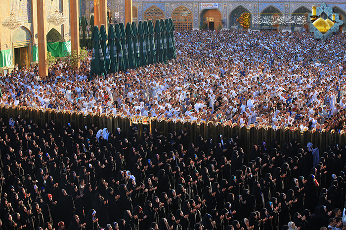 في أكناف الهداية، ورحاب الإمامة التأمت جموع المؤمنين الوافدين لحرم الإمامين موسى بن جعفر ومحمد بن علي الجواد "عليهما السلام" في مشهد إيماني كبير احتضنته رحاب الصحن الكاظمي الشريف, لأداء شعائر صلاة عيد الأضحى المبارك في أول أيام العيد السعيد وزيارة الإمامين الجوادين"عليهما السلام".