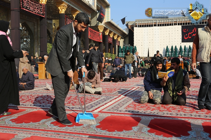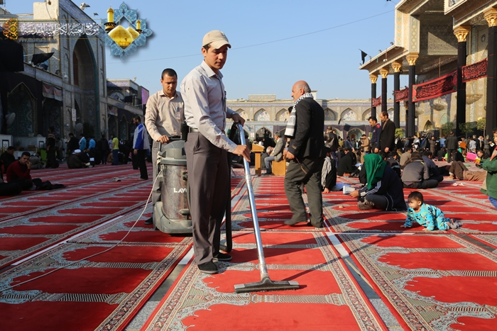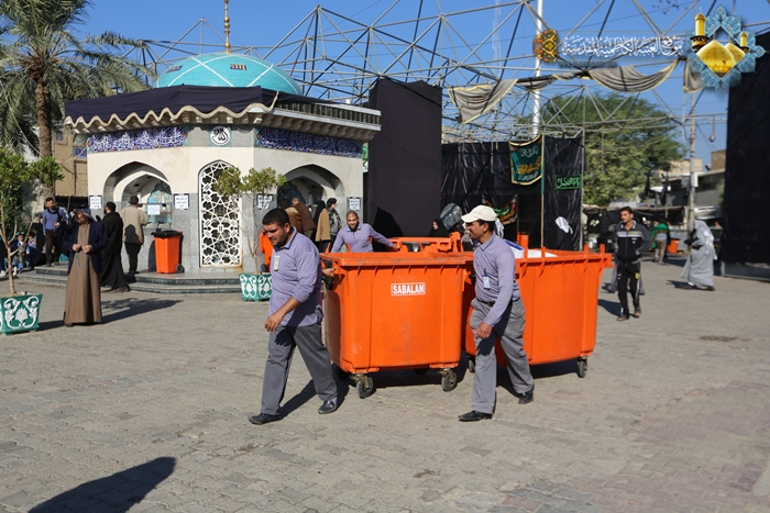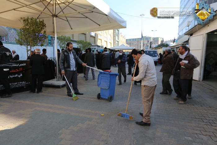 قدّمت شعبة النظافة في العتبة الكاظمية المقدسة جهوداً كبيرة حيث استنفر جميع إمكانياته لتوفير أفضل الخدمات وسبل الراحة للزائرين الكرام، وبغية التعرف على تلك النشاطات تحدث إلينا مسؤول الشعبة السيد خضير السعدي لموقع العتبة الالكتروني قائلاً: بدأت المهام منذ انطلاق الخطة التي وضعتها الأمانة العامة للعتبة الكاظمية المقدسة للزيارة الأربعينية فتم توزيع الخدم بشكل متناسق على المهام المناطة بهم لتهيئة وتنظيف دور الضيافة التابعة للعتبة المقدسة ومخيمات إيواء الوافدين من بلدان مختلفة، كما شكلت فرق عمل للحفاظ والسيطرة على النظافة العامة داخل الحرم ومحيط الصحن الشريف، وأعمال رفع النفايات ونقلها إلى الأماكن المخصصة لها، وفرق آخرى تقوم بتنظيف دورات المياه الصحية الحمامات وتجهيزها بالمنظفات، وإدامة مجاري الصرف الصحي داخل وخارج الصحن الشريف وكلّ هذه الجهود مستمرة على مدار الساعة وبدون توقف بما يتناسب مع حجم الزيارة المليونية.